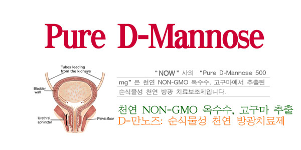 “NOW”사의 “Pure D-Mannose 500 mg”은 천연 NON-GMO 옥수수, 고마 추출된 순식물성 천연 방광 치료보조제입니다.