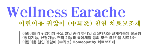 “Source Naturals”사의 “Wellness Earache”는 어린이들의 귀앓이의 주요 원인 중의 하나인 신진대사와 신체리듬의 불균형 (청각기능, 신경기능, 면역 기능과 특이체질 등의 모든 요인)을 치료하는 어린이용 천연 귀앓이 (中耳炎) Homeopathy 치료보조제입니다.