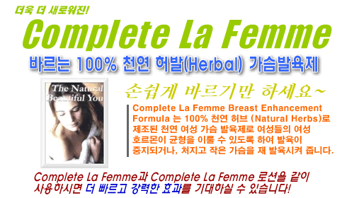 Complete La Femme® Breast Enhancement Formula 는 100% 천연 허브 (Natural Herbs)로 제조된 천연 여성 가슴 발육제로 여성들의 여성 호르몬이 균형을 이룰 수 있도록 하여 발육이 중지되거나, 처지고 작은 가슴을 재 발육시켜 줍니다.