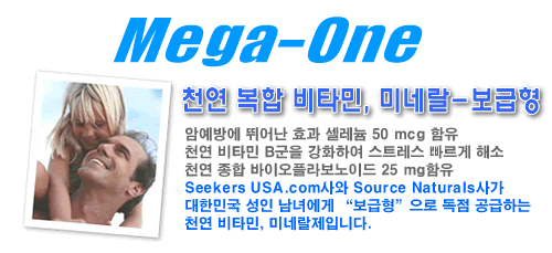 "Source Naturals”사의 “Mega-One”은 현대 성인 남성과 여성에게 필요한 각종 천연 비타민과 미네랄을 RDA (Recommended Daily Allowance; 일일 권장 복용량)을 함유하였습니다.