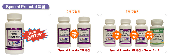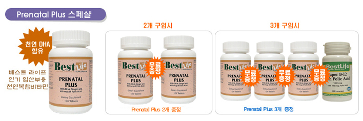 "Best Life"사의 "Prenatal Plus"는 임산부들에게 필요한 비타민, 칼슘, 미네랄등의 영양분들이 균형있게 공급해주는 임산부전용 복합비타민입니다. 일상적인 음식섭취에서 얻을 수 있는 영양분은 임산부에게는 부족하므로 균형 있는 영양분 공급을 위해 임산부전용 비타민을 복용하셔야 합니다.