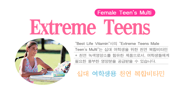 "Best Life Vitamin"사의 "Teen Girls Multi"는 십대 여학생을 위한 천연 복합비타민 + 천연 녹색영양소를 함유한 제품으로서, 하루가 다르게 성장하는 십대, 청소년들을 위해 충분한 영양소와 에너지를 충족해 줄 십대를 위한 천연 복합 비타민, 미네랄제입니다.
