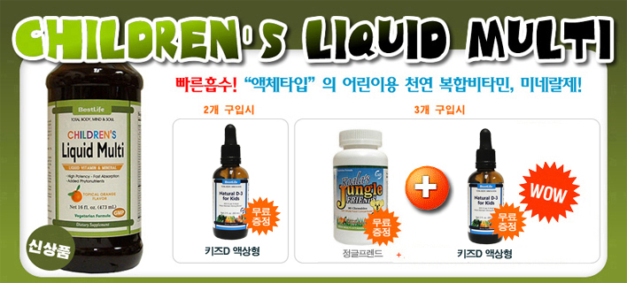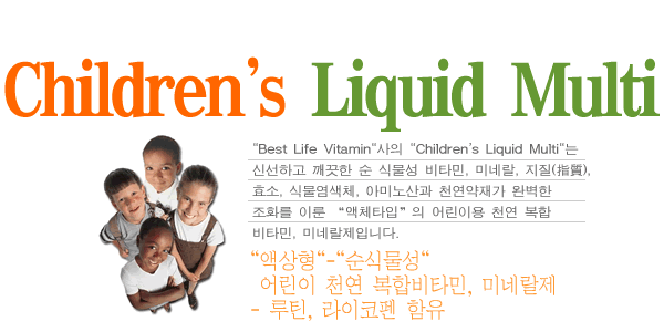 "Best Life Vitamin"사의 "Children"s Liquid Multi"는 신선하고 깨끗한 순 식물성 비타민, 미네랄, 지질(指質), 효소, 식물염색체, 아미노산과 천연약재가 완벽한 조화를 이룬 “액체타입”의 어린이용 천연 복합비타민, 미네랄제입니다.