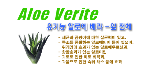 - 인공 방부제, 살충제, 화학비료 등을 일체 함유하지 않은 "유기농 알로에 베라" 입니다.