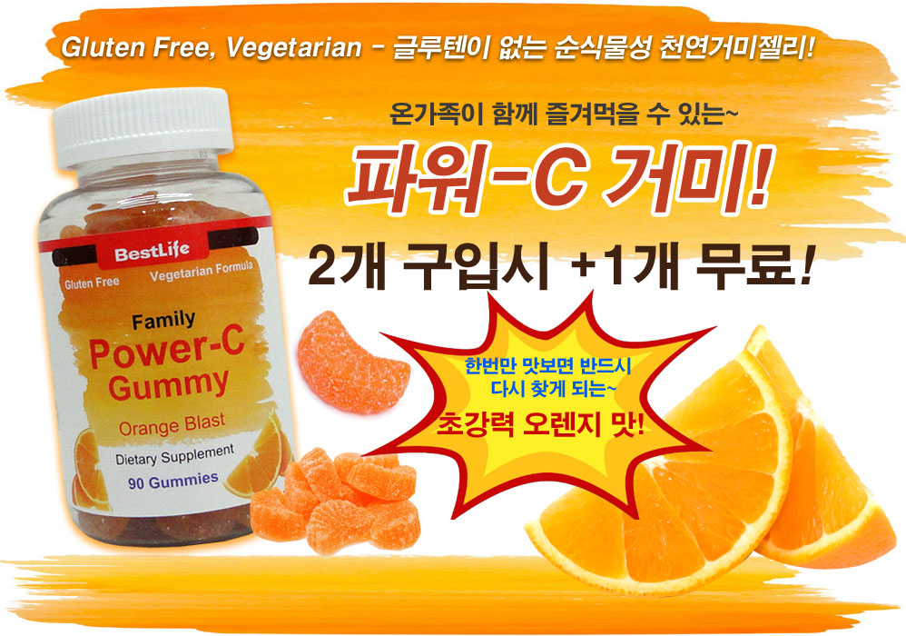 "Best Life Vitamin"사의 "Family Power-C Gummy"는 온가족이 "맛있게" 복용할 수 있는 글루텐을 함유하지 않은 "무-글루텐(Gluten-Free)" 거미 (Gummy)타입의 비타민 C입니다.